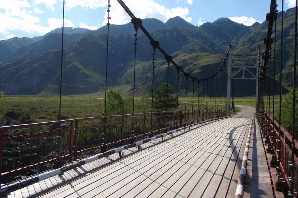 С моста отлично видны одни из самых красивых порогов Алтая Тельдекпеньские (так называемые Пни), по которым очень часто летом сплавляются водные туристы на рафтах, катамаранах и каяках в сторону Чемала.