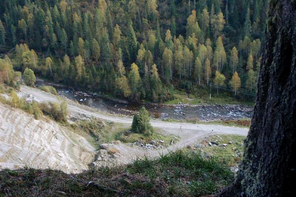 Высота карьера больше 300 м. Но чтобы побывать наверху, не надо карабкаться в гору. Есть очень простой и приятный путь, который начинается в поселке Иогач. Этот путь пройдет и ребенок и пожилой человек. Найдите Таежный переулок и поднимаетесь по нему до водонапорной башни. Отсюда идет тропа по кедровому лесу вдоль края обрыва, заблудиться невозможно. Пока идешь по тропе дышишь чистейшим воздухом кедрового леса, собираешь ягоды и грибы. В урожайный год здесь можно набрать кедровых шишек. Подъем пологий, спокойный и постепенно выходишь на верхнюю точку карьера. Здесь есть свободные от деревьев места. Далеко внизу течет река Иогач, если смотреть вверх по реке, то видна гора Кукуя, на которой будет горнолыжная трасса и подъемник.