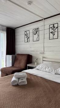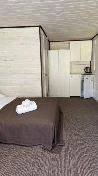 - Кровать 2-спальная (1,4*2,0 м), доп. место - раскладная кровать (по запросу, 1000 руб/сутки)