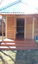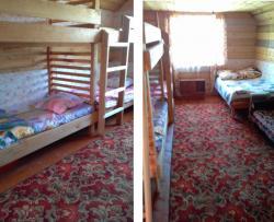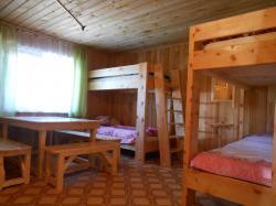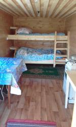 №2. Отдельный домик на 5 чел.: односпальная кровать, двухъярусная кровать с двухспальными кроватями, холодильник, эл. чайник. Душ, туалет на территории.