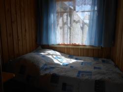 №1. Двухкомнатный домик 8 мест: комната второго этажа с кухней, спальней и балконом. В комнате 2 двуспальные и 4 полутораспальные кровати, холодильник, телевизор, эл. плита, эл. чайник, посуда, горячая и холодная вода. Вид на горы с балкона. Душ, туалет на территории.