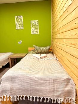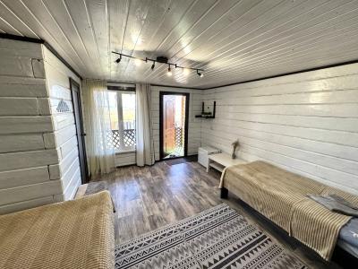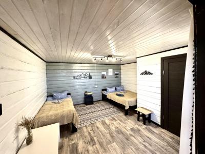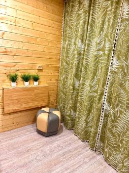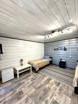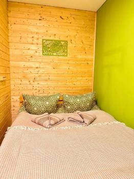 Новый 3х-местный домик со всеми удобствами:1 двуспальная кровать и 1 полутораспальная кровать, панорамные окна, раскладной столик.
