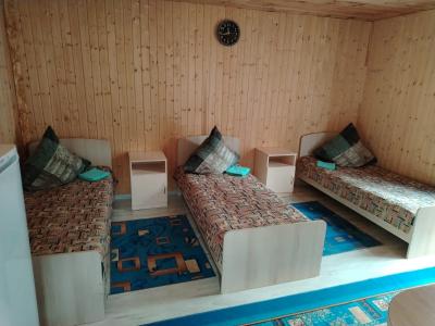 душ, сан. узел, раковина, три отдельных кровати, обогреватель, холодильник, чайник.