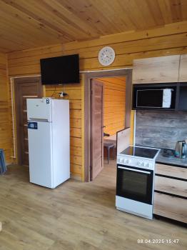 - Кедровая баня с тремя отделениями: парная, моечное, комната для отдыха. Внутри парная отделана вагонкой из липы. Каменка выложена из лечебных камней. Есть парогенератор, который выдает полезный мелкодисперстный пар.