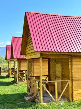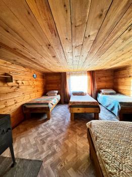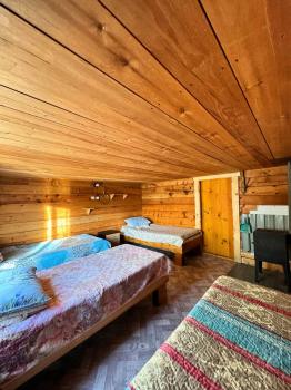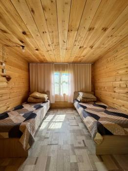 Пять односпальных деревянных кроватей, чистое постельное белье, матрацы. Есть электричество, розетки, свет, уютная и большая беседка для гостей аила.