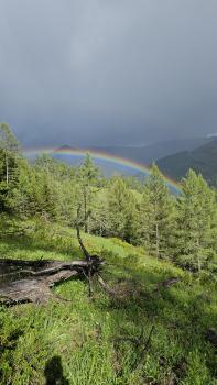 С территории базы открывается прекрасный вид на Теректинской хребет, а так же не менее прекрасные закаты солнца.
