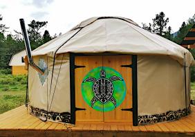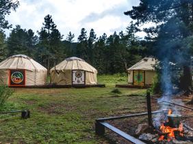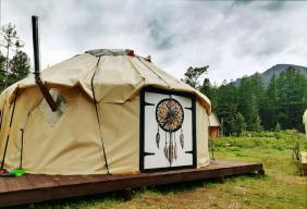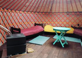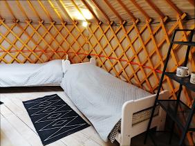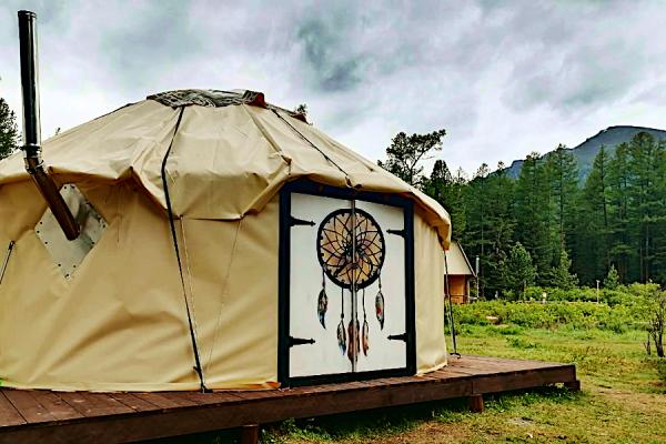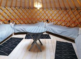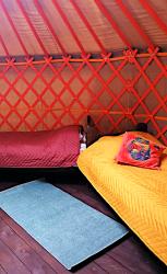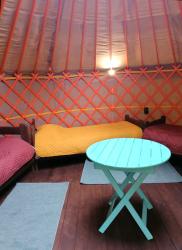 - 3 юрты, по 4 кровати в каждой (всего 12 мест),