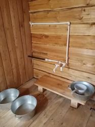 Три односпальные кровати, туалет, раковина, печь. Электричество от солнечных батарей.