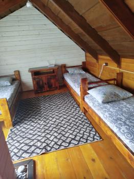 Четыре 1-спальных кровати, тумбочка. Лестница на второй этаж - снаружи дома
