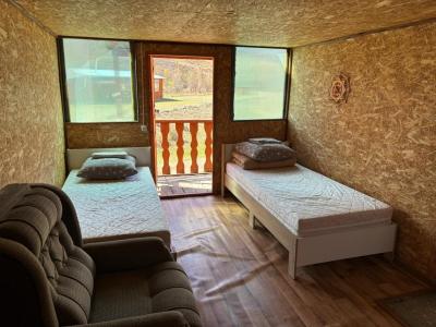 Домик 3-местный с видом на реку. Две полутораспальные кровати, холодильник, чайник, стол, плитка электрическая. Терраса с видом на реку. Санузел: туалет, раковина. Горячий душ на территории. Аренда дома