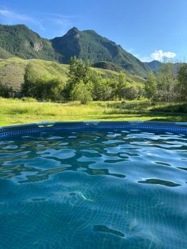 Это тихое и живописное место Алтая, домики стоят на берегу реки Большой Яломан.