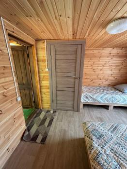 Дом 3-местный с видом на реку c удобствами. Две полутораспальные кровати, холодильник, чайник, стол, плитка электрическая. Терраса с видом на реку. Санузел: туалет, раковина. Горячий душ на территории. Аренда дома