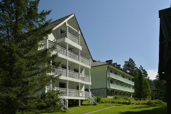 Двухкомнатный номер в корпусах №1,2, состоит из гостиной и спальни. В номере: двуспальная кровать, мягкая мебель (раскладной диван), платяной шкаф, тумбочки, холодильник, чайник, мини-бар, ТВ, DVD. Туалетная комната: WC, раковина, душ. 2 осн.места + 2 доп.места (раскладной диван).