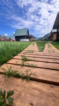 Санузел, душ с горячей водой. Кухня. Двухспальная кровать и двухспальный диван. На веранде стол и стулья, где можно сидеть вечерами и наслаждаться красотой горного Алтая. Цена актуальна при бронировании от 2-х суток: