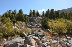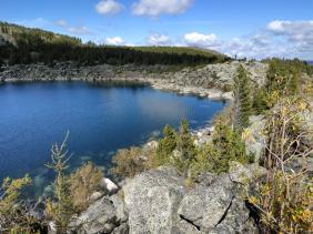 Уазики высаживают туристов на стоянке, и дальше минут 10-30 вы поднимаетесь к озеру пешком (зависит от того, где вас высадили: поближе или подальше от озера). Тропа проходит через заросли карликовых берез, теряется на огромных валунах курумника и постепенно поднимается в озеру.
