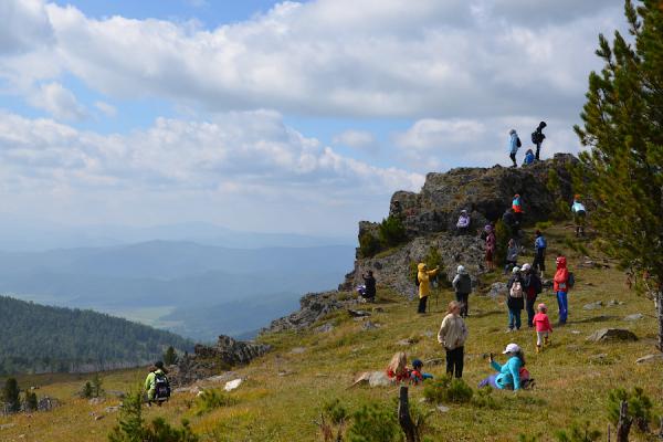 На вершине горы Тияхта много скальных выступов, по которым интересно полазить
