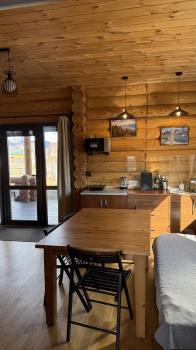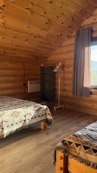 - 1 этаж с камином на 6 человек: 2 спальни по 3 человека (1 односпальная и 1 двуспальная кровати), кухня-гостиная (со всем необходимым для приготовления), душ и туалет. Для уюта и теплого вечера можно зажечь камин.
