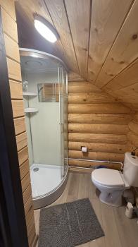 На локации "Коттедж" большой теплый дом, есть баня и купель. Круглогодично.