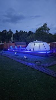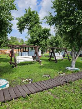 Для вашего отдыха: баня, банный чан, бассейн, гамак, садовые качели. Детям - игровая зона с батутом.