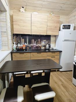 Ø В доме имеется зона кухня, оборудованная кухонной мебелью, бытовой техникой и комплектом посуды.