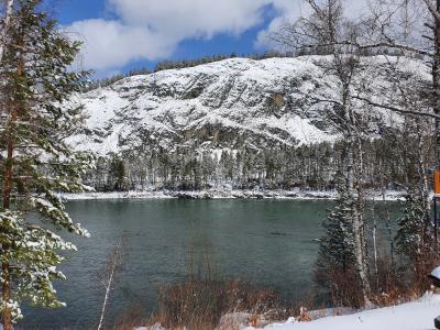 С территории открывается восхитительный вид на Катунь и горы, на которых пасутся горные козлы. Можно спуститься к воде и половить хариуса, покормить уточек или просто посозерцать и послушать шум воды.