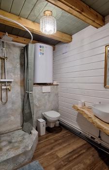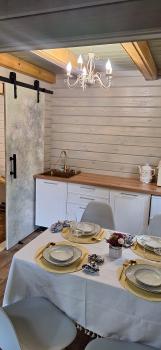 В доме санузел с теплым полом, душ, унитаз, раковина, большая 2х спальная кровать с изголовием из слэба кедра, диван, где могут разместиться 2е ребятишек, обеденная зона, кухонная зона с холодильником, микроволновой печью, керамическим электрическим чайником, комплектом посуды, кострюлей и сковородой, зона прихожей. Для гостей стелим уютное и натуральное льняное бельё, предоставляем комплект полотенец, фен, гель для душа, шампунь, жидкое мыло, туалетную бумагу, пледы, теновый обогреватель, Wi-Fi.
