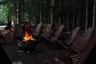 Каждый дом оборудован собственной террасой с живым огнём — редкая деталь для горного отеля.