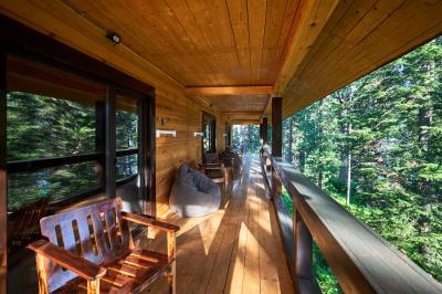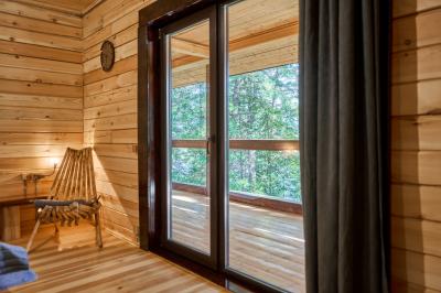 Панорамные окна и огромная терраса позволит насладиться видом на хвойный лес и озеро.