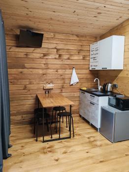 Площадь одного шале 20 кв. м и просторная индивидуальная терраса 10 кв. м.