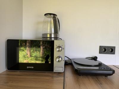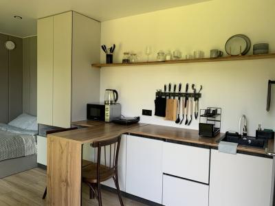 - Уютная гостиная совмещенная с кухней где есть: микроволновка, холодильник, индукционная плита, скороварка, вся посуда, а также продумана каждая мелочь для того чтобы вам было комфортно, есть телевизор и Wi-Fi.
