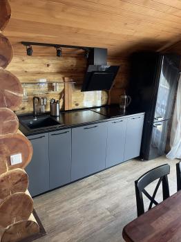 В каждой половине есть кухня-гостиная, где в можете воспользоваться холодильником, плитой, СВЧ печью, чайником, телевизором.