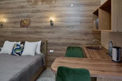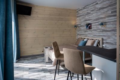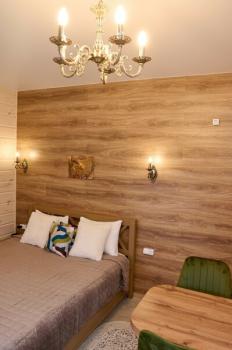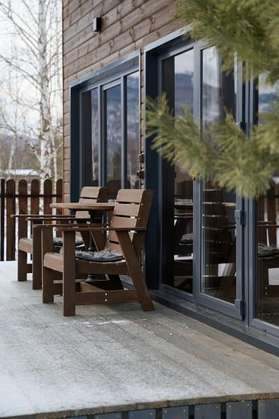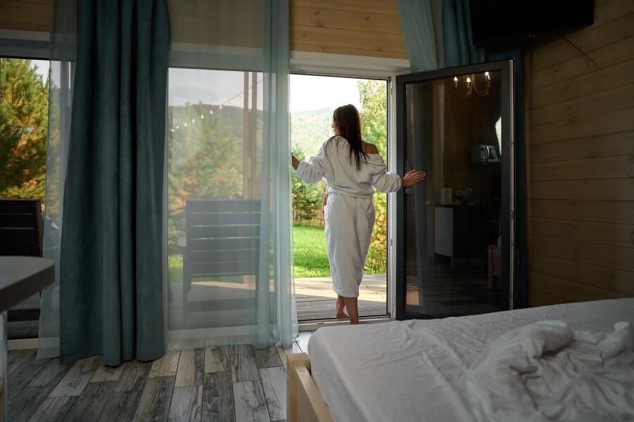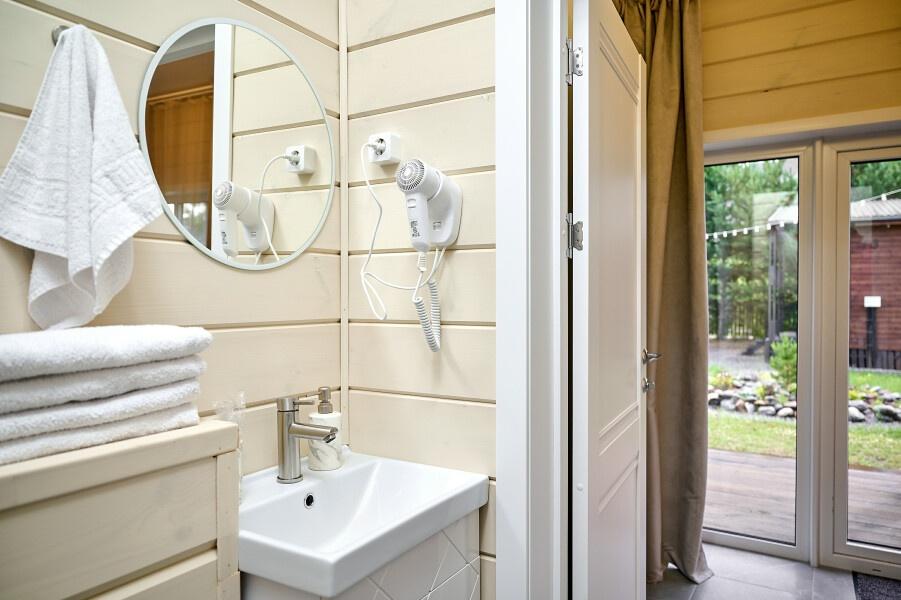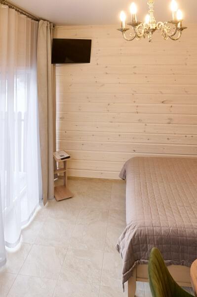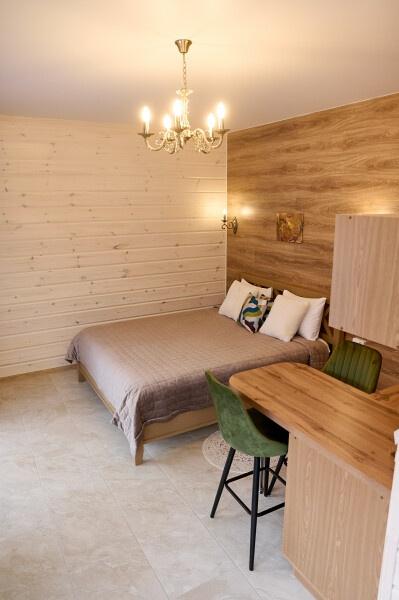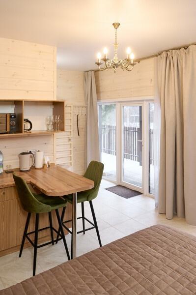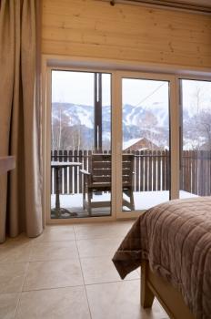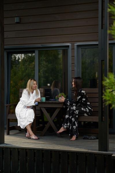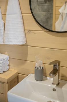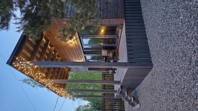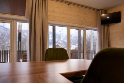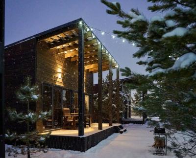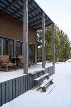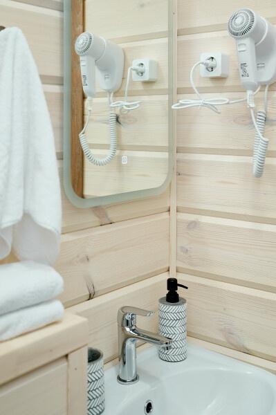 Для размещения отдыхающих предлагаются отдельно стоящие одноэтажные круглогодичные гостевые домики с панорамными окнами и верандами, с которых открывается прекрасный вид на горы как летом, так и зимой. В каждом домике есть санузел с душевой кабинкой, мини-кухня.