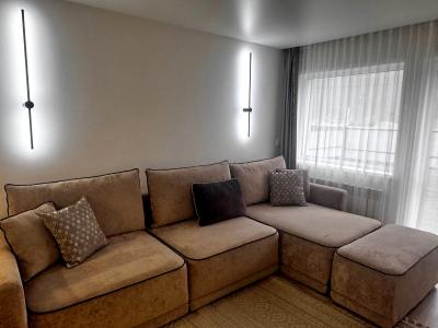 - Гостинная-столовая: 2-местный диван, большой стол, стулья.