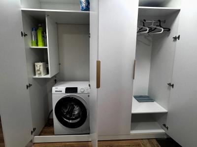 - Прихожая: Зеркало, стиральная машина, шкаф.