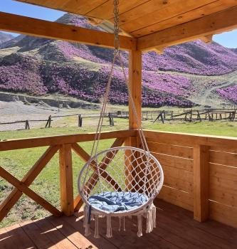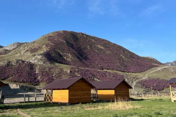 Гостевые домики находятся в отдалении от трассы, в спокойном месте между двух гор. Весной, когда цветет маральник, горы покрываются сиреневым ковром. Рядом с домиками течет река Инюшка, где можно рыбачить. Можно подняться на ближайшую гору на смотровую площадку с красивым видом.