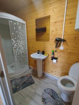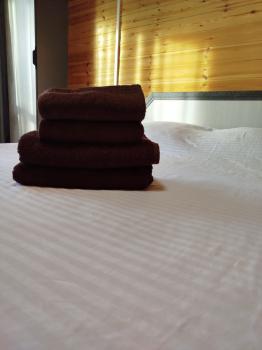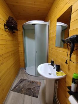 В каждом номере душевая кабина (полотенца, фен, шампунь), туалет, раковина, двухспальная кровать с белоснежным постельным бельем, шкаф для вещей.