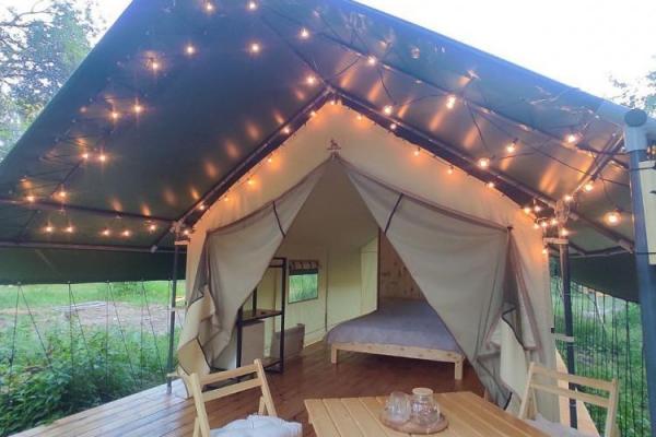 Комфортабельные палатки (5 шт), внутри душ, туалет, двуспальная кровать, матрац с подогревом, шкаф, холодильник, стол, стулья на террасе, шкаф. Одна палатка снабжена индивидуальным банным чаном. Стоимость палатки