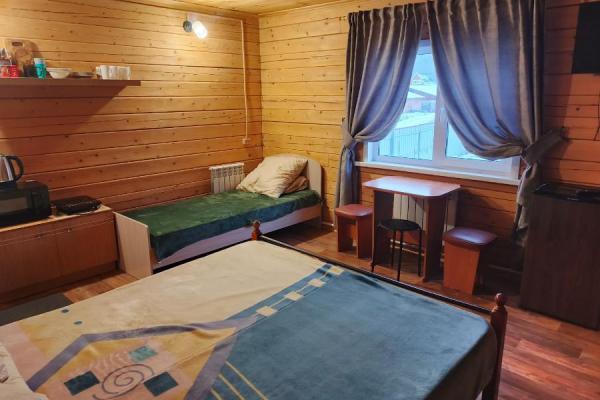 В двухэтажном доме на каждом этаже располагается по 3-х местному номеру.