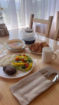 - Питание (сбалансированное трехразовое питание в столовой, натуральные продукты, мясо марала, травяные чаи, душистый мед)