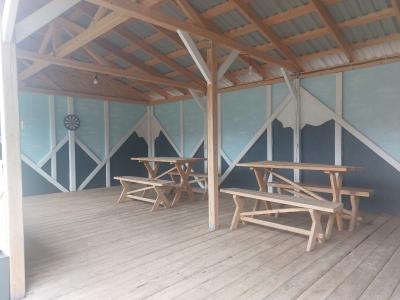 Общая кухня для всех номеров со всеми удобствами, плита, микроволновка, чайник, посуда, кастрюли, 2 стола. Площадь кухни 32 м2.