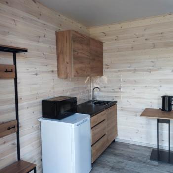 - Кухонная зона (микроволновка, чайник, холодильник, посуда)
