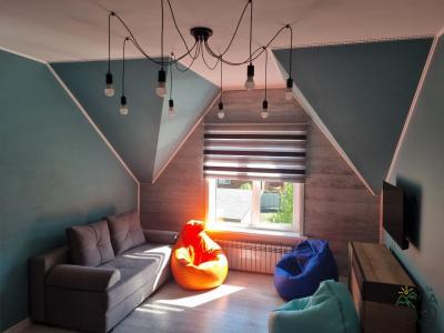 - Гостиная на 2 этаже для просмотра ТВ, настольных игр и отдыха
