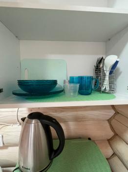 - Мини-Кухня (стол, стулья, микроволновка, чайник, мультиварка, холодильник, необходимая посуда).