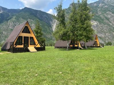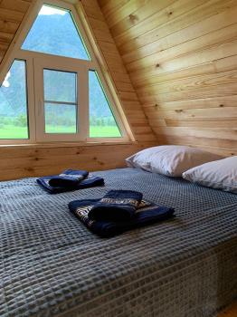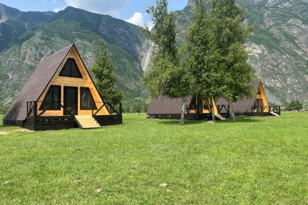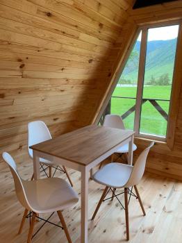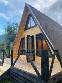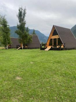 три уютных тёплых домика А-ФРЕЙМ, идеально вписывающиеся в горный ландшафт.