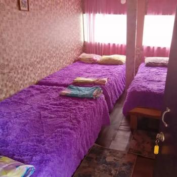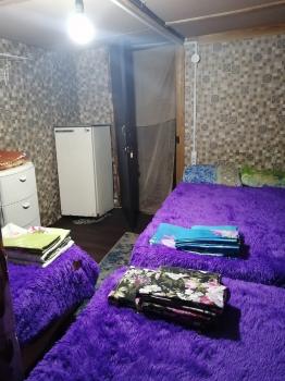 В номере три двухспальные кровати, холодильник, комод, вешалка, электричество.