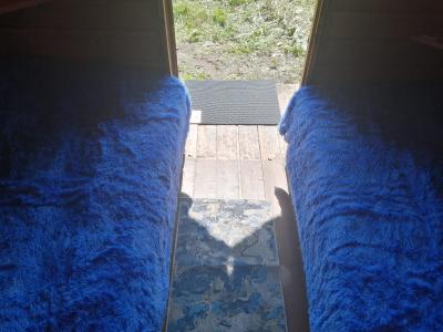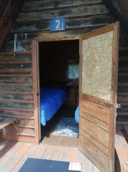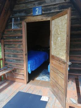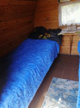 В бунгало две полутораспальные кровати, столик, полочки, вешалки, электричество.