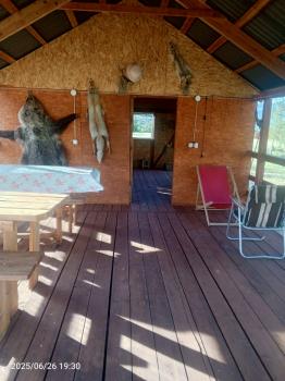 - Два классических 4-местных домика с удобствами для проживания летом и зимой (дополнительно можно ставить кровати). Цена 5000 р. дом /сутки.