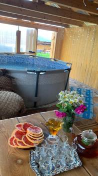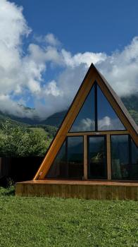 Вы можете забронировать один из двух полностью благоустроенных домиков с панорамным видом на горы.