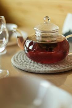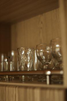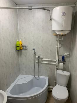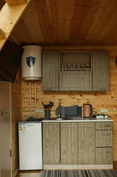 - укомплектованная кухонная зона ( посуда, чайник, горячая вода, плитка)