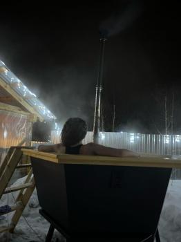 На территории вас ждет настоящая русская баня, в которой вы сможете полностью расслабиться и восстановиться, также бассейн.